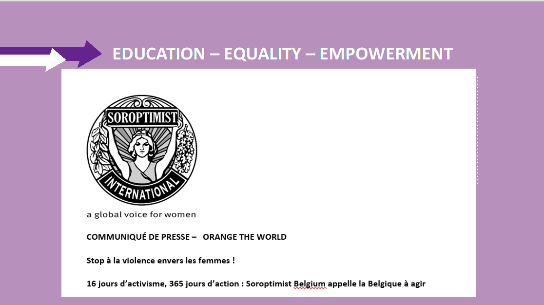 Stop à la violence envers les femmes ! 16 jours d’activisme, 365 jours d’action : Soroptimist Belgium appelle la Belgique à agir.