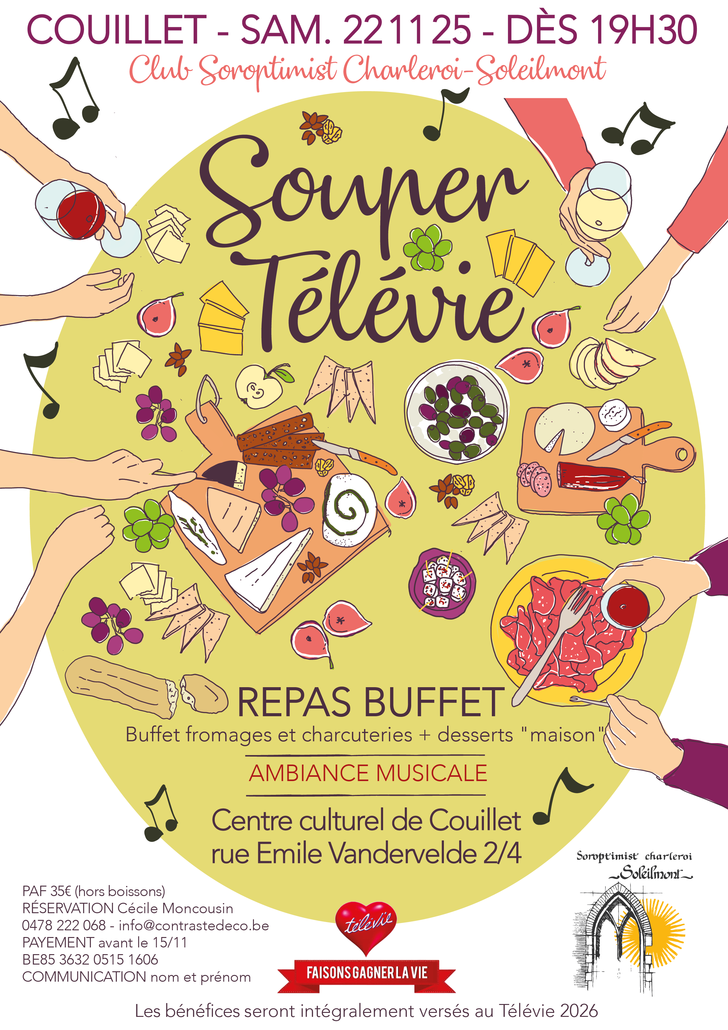 Le samedi 22/11/25 dès 19h30, repas buffet (fromages, charcuteries et desserts maison) au profit du Télévie